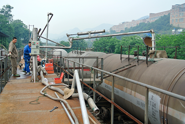 重慶市華鐵物流有限公司(化工鶴管潛液泵為"苯"罐火車卸車的現(xiàn)場照片)