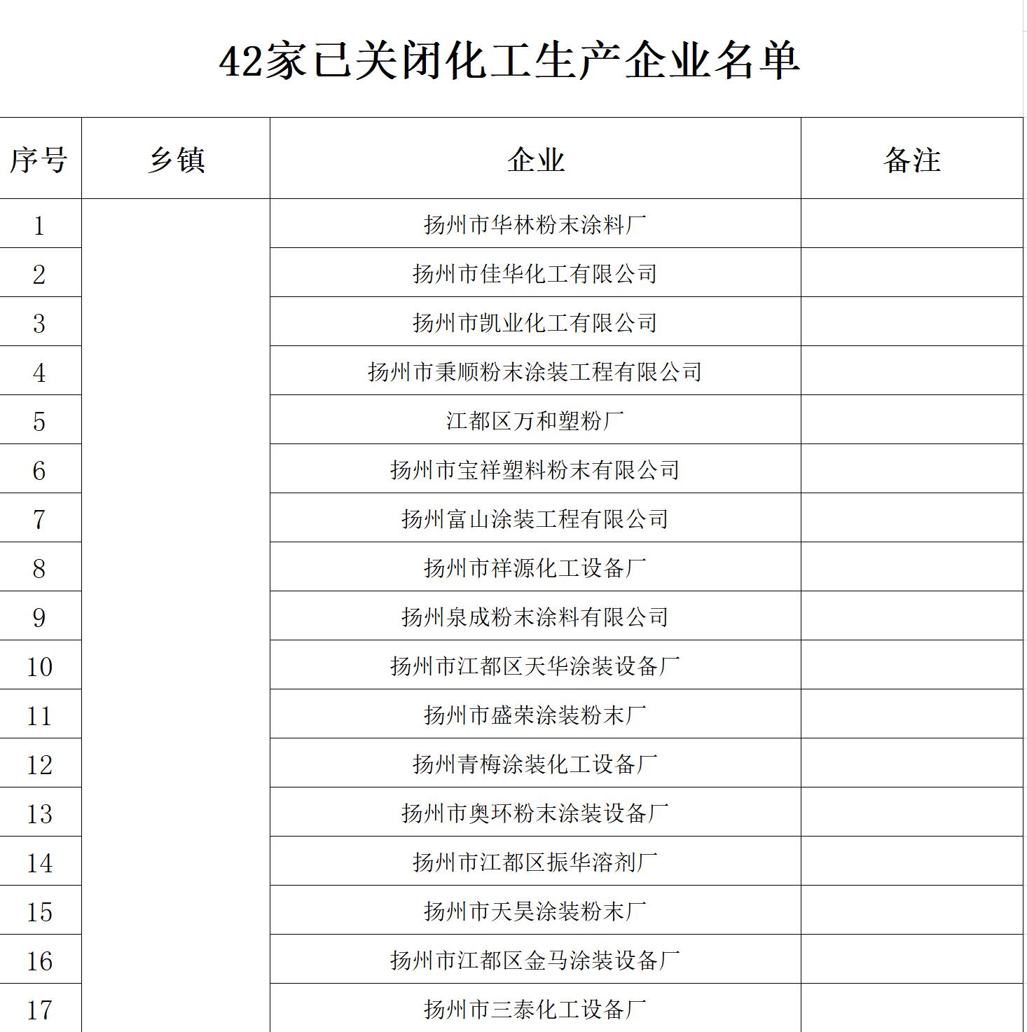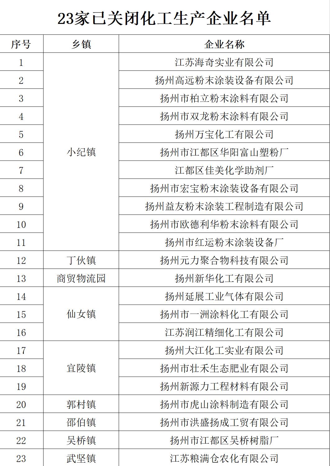 點(diǎn)擊下載查看:江都區(qū)已關(guān)閉288個(gè)化工生產(chǎn)企業(yè)名單