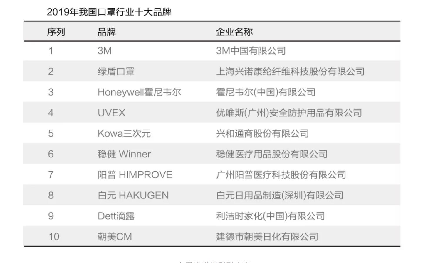 疫情期間幫您梳理口罩行業(yè)的廠家及排名