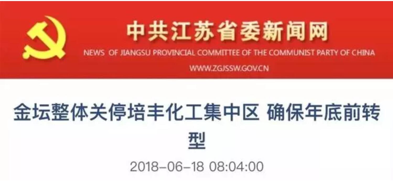 據(jù)當(dāng)?shù)毓俜矫襟w2018年報(bào)道顯示,常州市金壇區(qū)于2016年8月1日收到中央環(huán)境保護(hù)督察組交辦的環(huán)境信訪事項(xiàng)后,持續(xù)對(duì)園區(qū)企業(yè)進(jìn)行了提標(biāo)改造。作為2016年中央環(huán)保督察交辦的38個(gè)化工園區(qū)問題之一,因未能滿足500米衛(wèi)生防護(hù)距離內(nèi)居民全部拆遷的要求,區(qū)委、區(qū)政府決定從根源上消除環(huán)境隱患,結(jié)合將來的區(qū)域發(fā)展規(guī)劃,取消培豐化工集中區(qū)產(chǎn)業(yè)定位,按化工企業(yè)整治的要求,對(duì)所有企業(yè)實(shí)行關(guān)停。