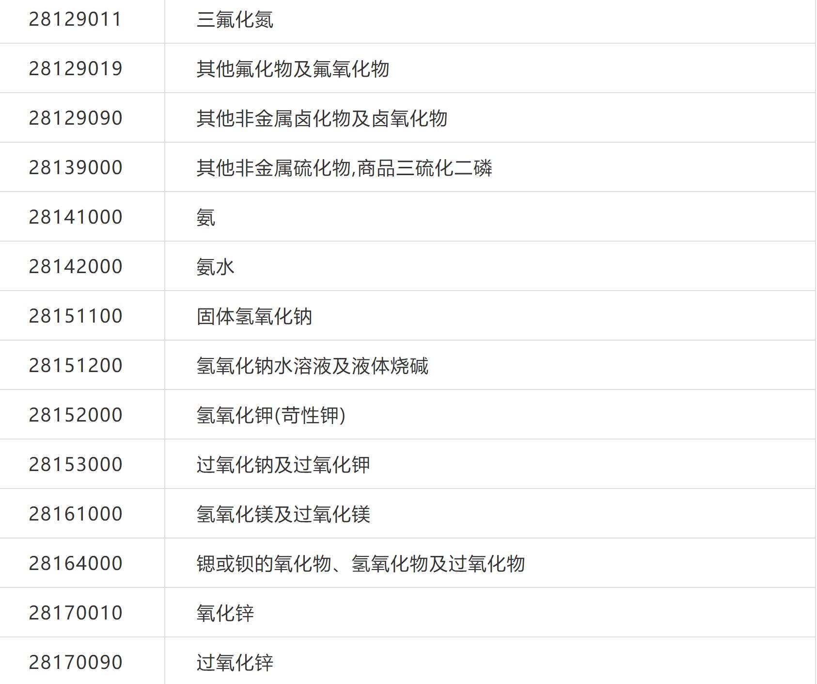 可申請排除的化工產(chǎn)品清單如下(部分化工產(chǎn)品清單):