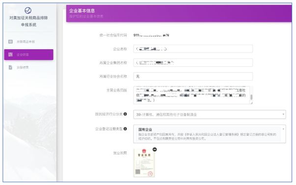 答:1.商品基本信息; 2.企業(yè)近3年進(jìn)口情況; 3.加征關(guān)稅對企業(yè)的影響; 4.申請排除的理由;(每項(xiàng)下面會(huì)有具體分項(xiàng))。