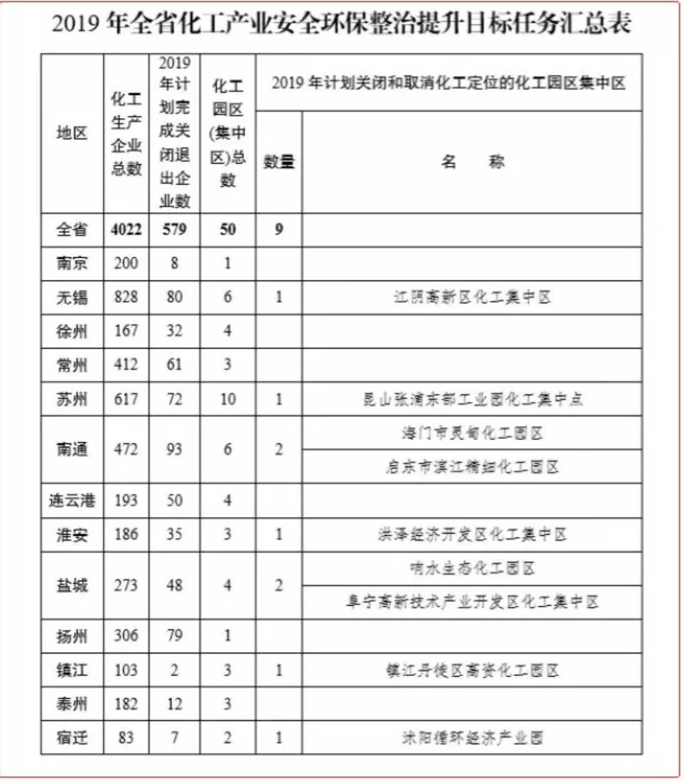 江蘇整治化工企業(yè)4022家!計(jì)劃關(guān)閉1431家企業(yè),9個(gè)化工園區(qū)(集中區(qū))!